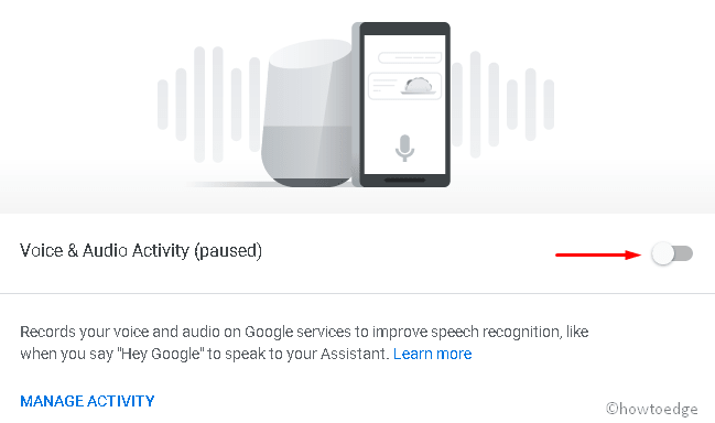 Step-6: Succeeding after, visit the Activity controls section again and turn off voice recording Google Assistant.